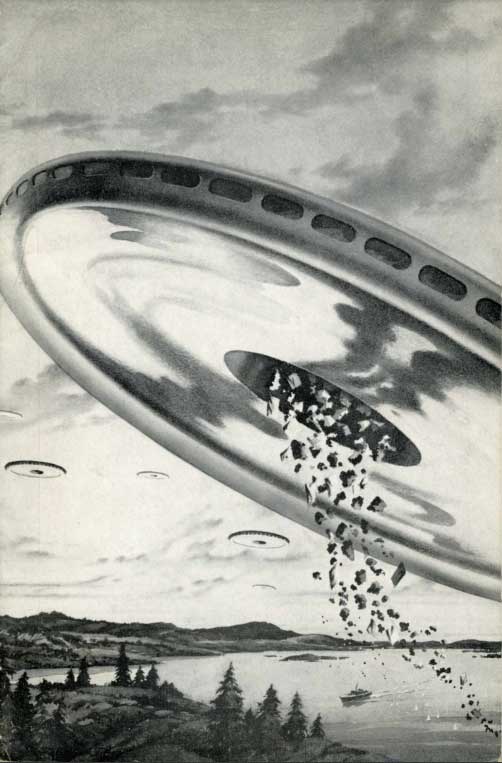 On June 21st, 1947, a Tacoma man named Harold Dahl brought his son, two workers, and the family dog aboard his vessel to salvage logs from the waters of Puget Sound. The North Queen and her passengers traveled three miles north until they reached the shores of Maury Island—right across the water from Edmiston’s community. There, Dahl alleged that six flying discs appeared overhead. One seemed to be malfunctioning, flying lower than its companions, eventually spewing molten material down on the boat. The dog was so badly burned that it died, and Dahl’s son’s arm was singed to the point where he was taken to the hospital.